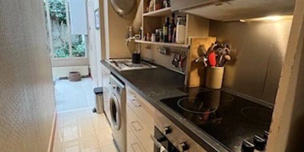 Washing machine for laundry is in the kitchen; laundromat across the street offers ample drying capacity, and larger washers for bigger loads.